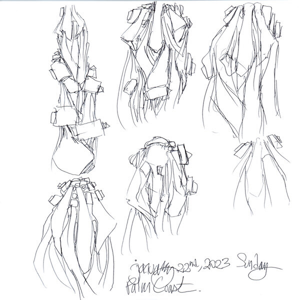 7PDF Pages, with each Page containing at least three hand drawn “Ink” and “Pencil” line works.