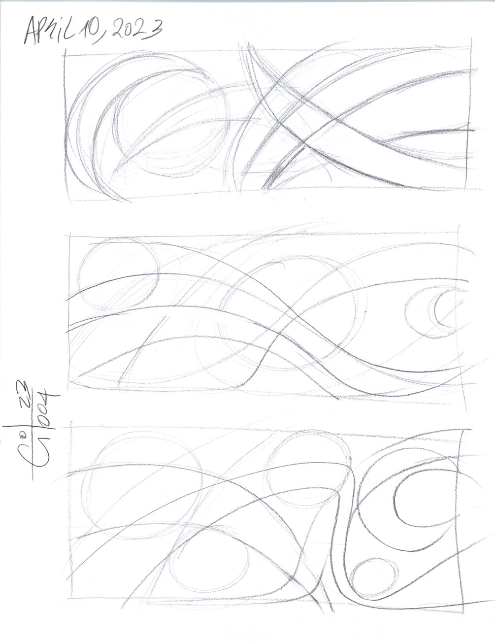 3 PDF Pages, with each Page containing at least three hand drawn Pencil line works.